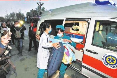 在生活中,孩子们经常把异物卡在进气道里。作为父母,当这些紧急情况出现在你面前时,你应该做些什么才是正确有效的?首先要知道一件事:抢救的关键在于前10分钟,以及这10分钟内的一些急救技术,你可以掌握并应用到实践中。城步长途救护车转院告诉您父母如何急救异物卡喉?1.将孩子侧卧在一侧前臂上,同侧手固定下颌角,使头部稍微向后倾斜,打开气道。2.用另一只手固定孩子的头部和颈部,头部压低,头部低于身体,使用重